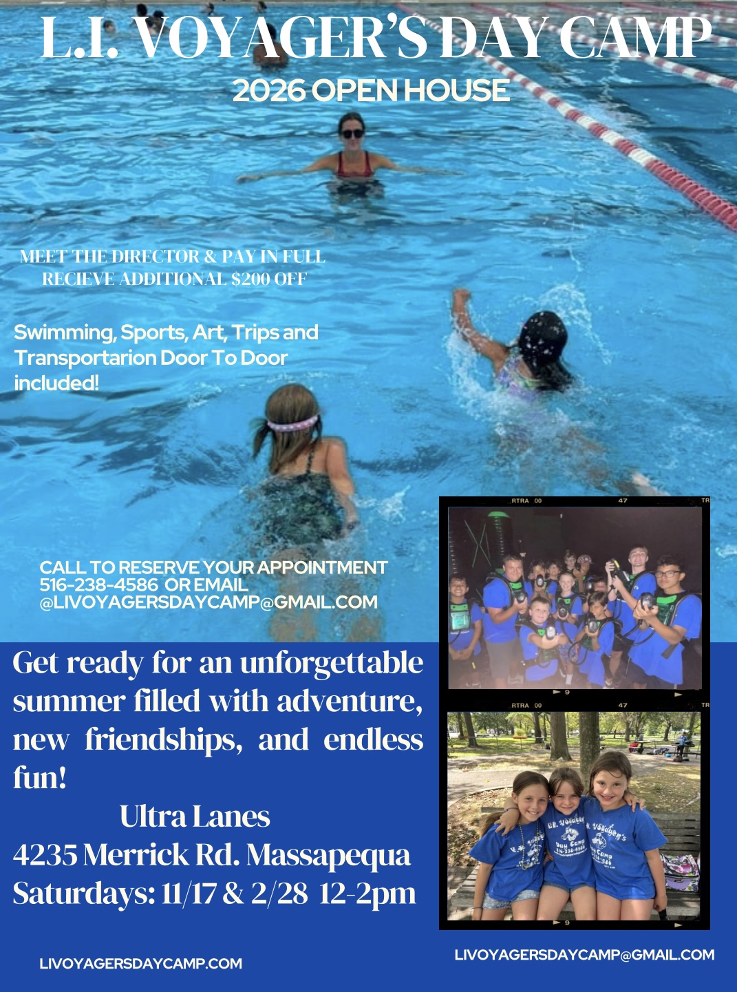 Our goal is to create an environment where children can learn and develop intellectually, physically, and spiritually while also having fun. We offer a full range of specialties, including swimming, sports, arts and crafts, and amazing trips to destinations such as Adventureland, Tiki Adventure, Fire Island, and more.